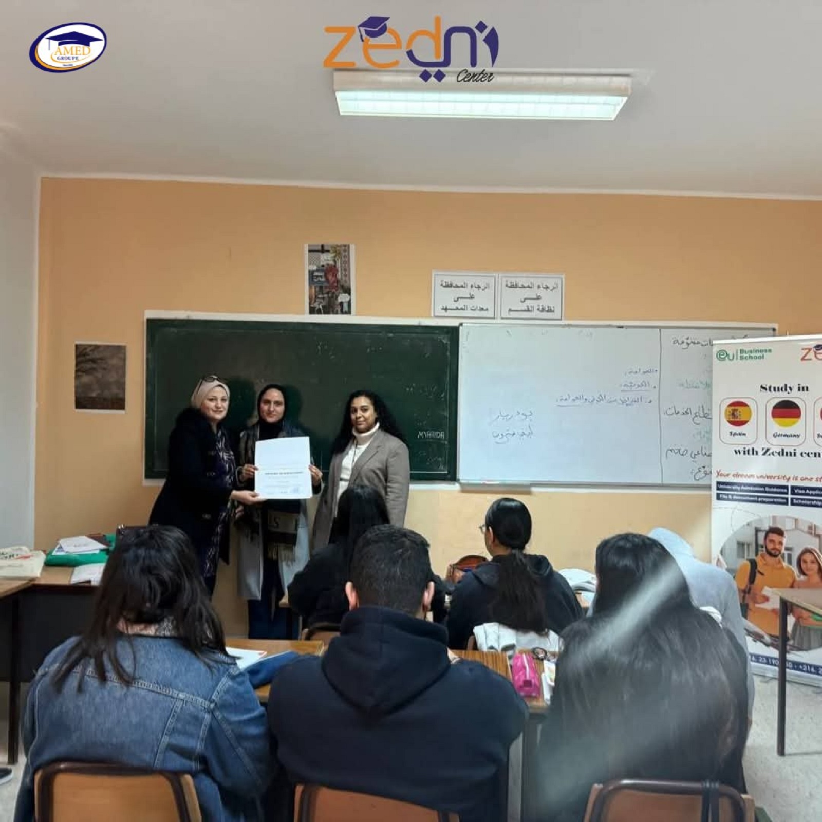 Notre lycée Amed Sahloul a accueilli ZEDNI Center for Studying Abroad pour une rencontre enrichissante autour des études à l’international, avec la présentation de European Business School, l’une des universités les mieux classées en Europe.